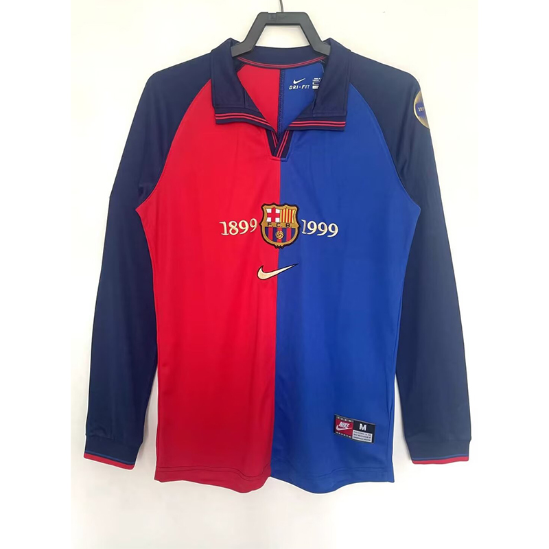 1999/2000 Long Sleeve Retro Barcelona Home 100th Anniversary Version Football Shirt 1:1 Thai Quality